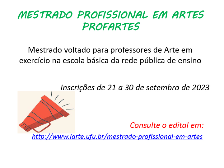 Edital de Seleção de bolsistas do Programa de Mestrado Profissional (PROFARTES/EBA/UFMG) para Professores da Educação Básica (ProEB) – Inscrições a partir de 03/03/2023