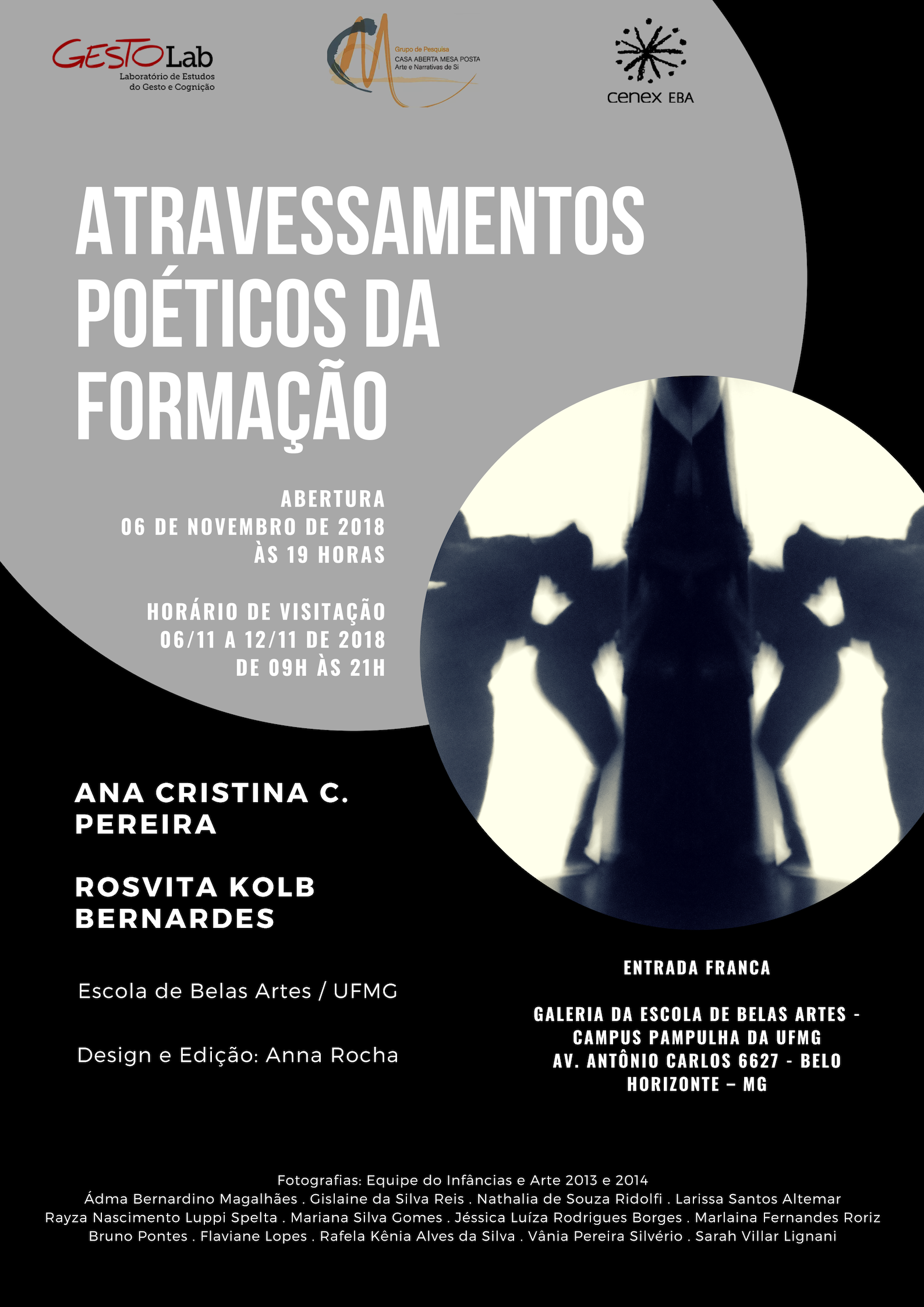 A exposição apresenta imagens das alunas durante suas experiências do ato de aprender através de espaços de narrativas constituídos por falas, gestos, imagens, sons e movimentos, além da produção de novos sentidos, como fruto das relações e ATRAVESSAMENTOS no e com o corpo de quem viveu a experiência sensível TORNANDO VISÍVEL QUANDO E COMO SE APRENDE O QUE É ARTE.